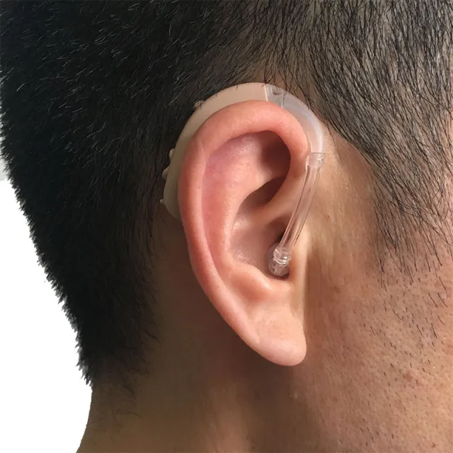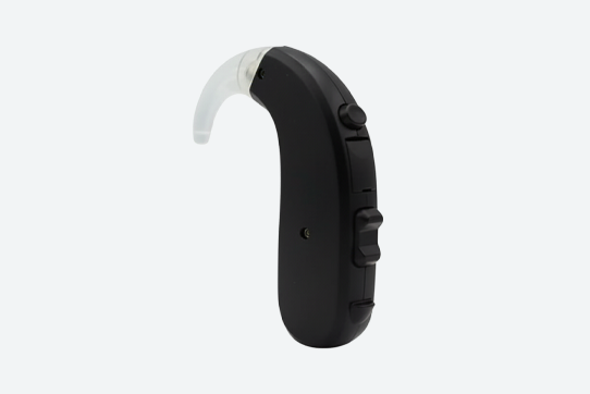 Our Behind-the-Ear hearing aid is fully digital, powerful, reduces noise, easy to control, comfortable to wear, and alerts you when the battery is low.